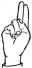 На ћирилици написано БОГИЊА НАУПАРАЦ састоји се из 14 слова [?]. Исписано ћириличном једноручном азбуком за глувонеме: